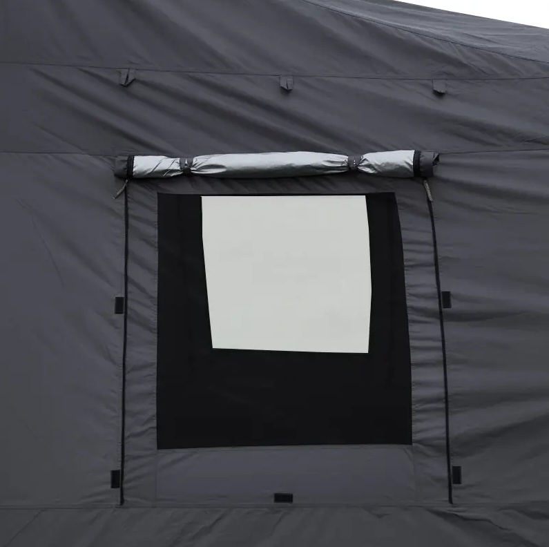 Living Mare: Anexa se combină cu streașina cortului de pe acoperiș pentru a oferi un spațiu de locuit generos, ideal pentru campingul în aer liber.