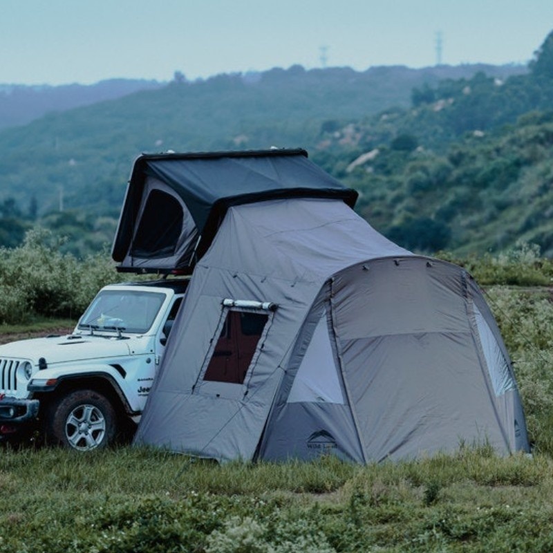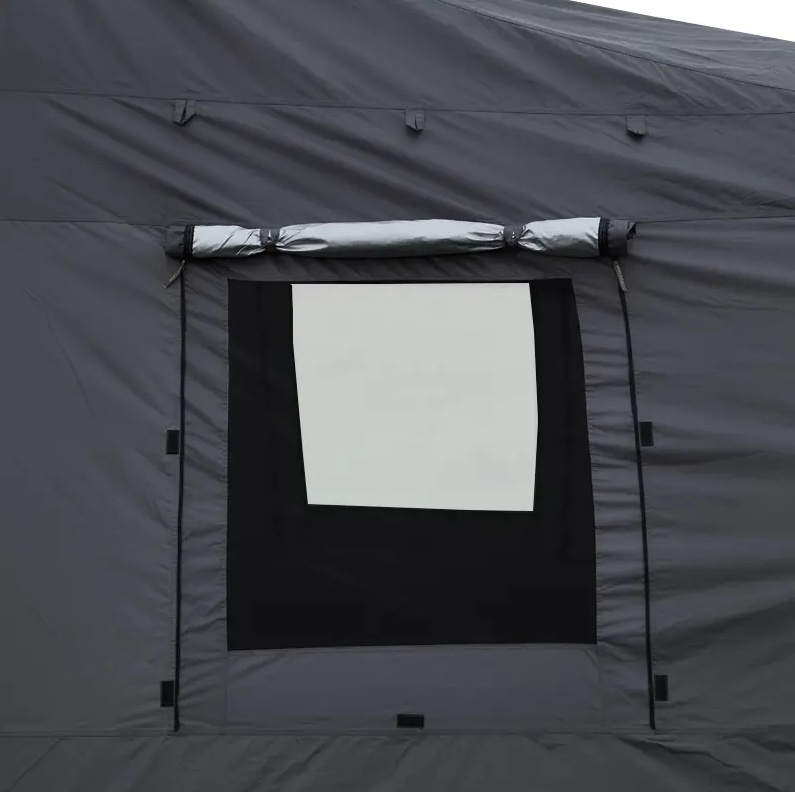 - Spațiu Generos: Se atașează la streașina cortului de pe acoperiș și creează o zonă de living confortabilă, perfectă pentru camping.