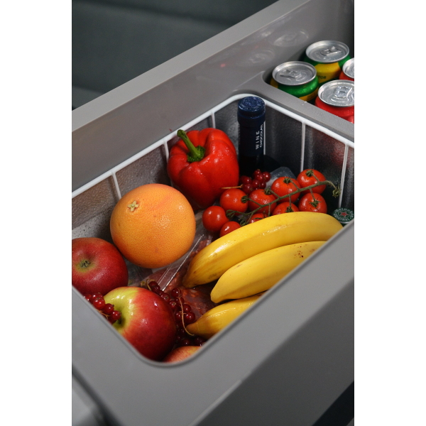 În plus, rafturile pentru alimente și punga frigorifică incluse vă permit să organizați conținutul în mod eficient pentru o experiență mai plăcută și ordonată.