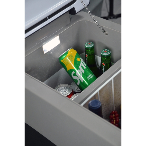 Frigiderul Overlander pentru camping vine însoțit de un adaptor AC la DC și un cablu de alimentare DC de 2,5 metri, asigurându-ți opțiuni flexibile pentru alimentare. De asemenea, dispune de o rezervă interioară anti-scurgere pentru a preveni eventualele incidente.