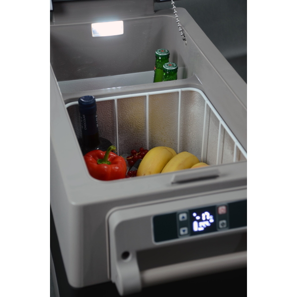 În plus, rafturile pentru alimente și punga frigorifică incluse vă permit să organizați conținutul în mod eficient pentru o experiență mai plăcută și ordonată.
