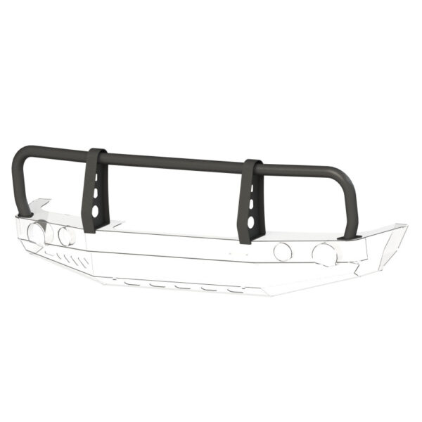 Bara de protecție are orificii de montare pentru suporti de prindere, orificii montare hi-lift si lampi cu halogen.