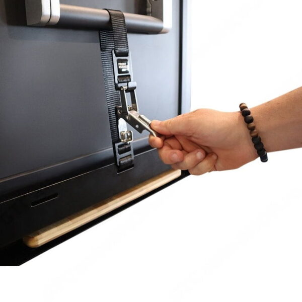 Asigurați-vă că echipamentul dvs., cum ar fi frigiderul, rămâne stabil și securizat cu ajutorul acestei curele cu sistem de eliberare rapidă, concepute pentru o fixare simplă și eficientă. Această soluție rapidă vă permite să fixați cu siguranță frigiderul pe un slider sau deasupra unui sistem de sertare, asigurându-vă că este bine ancorat chiar și în timpul traversării terenurilor accidentate.