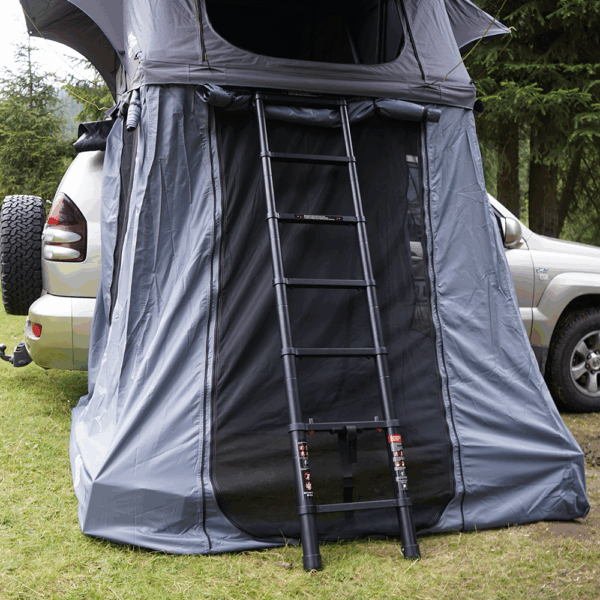 - Anexa este proiectată ca o extensie a cortului principal, cu o înălțime de plafon de 1,6 m. Aceasta oferă un spațiu suplimentar generos pentru depozitare, relaxare sau utilizare suplimentară.
