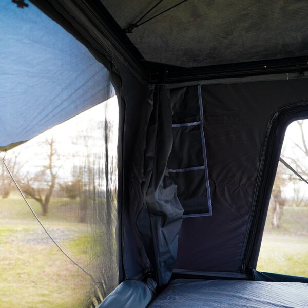 Ventilație & Încălzire: Ferestre laterale și superioare prevăzute cu plasă anti-insecte, pentru o circulație optimă a aerului. În plus, cortul este echipat cu un decupaj special conceput pentru instalarea unui încălzitor tip Webasto, oferind un confort sporit în serile reci.