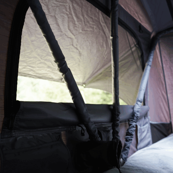 Cortul este prevăzut cu o fereastră PVC integrată în acoperiș, care permite luminii naturale să pătrundă în interior și oferă o priveliște frumoasă către cerul înstelat. De asemenea, ferestrele laterale sunt prevăzute cu plasă de insecte, asigurând ventilație adecvată și protecție împotriva insectelor.