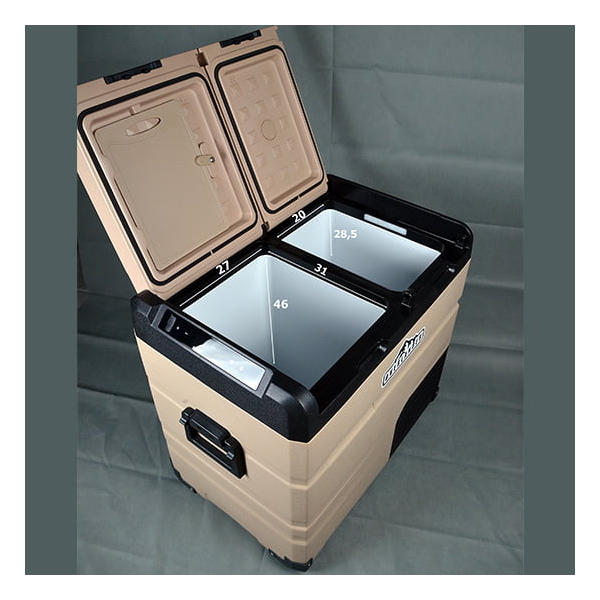 Frigiderul + congelator auto cu compresor DC este un companion de încredere în călătoriile dumneavoastră. Cu o capacitate de 55L, acesta vă permite să vă păstrați alimentele și băuturile proaspete și răcoroase în timpul deplasărilor. Sursele de alimentare 12/24V și 220V îl fac versatil și potrivit pentru orice locație sau vehicul.