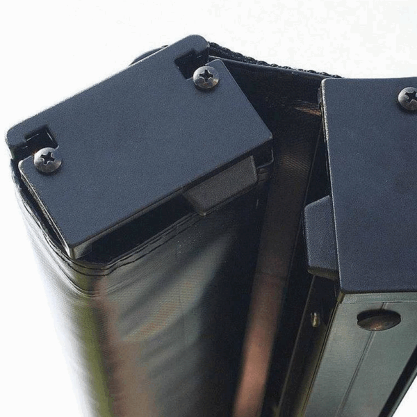 Opțional, pentru toate dimensiunile de marchize, există un set cu trei pereți laterali cu ferestre mari și o ușă. James Baroud a adus o soluție inovatoare și aici: un profil semicircular cu o șină de legătură se atașează de traversă și plafon, iar pereții laterali sunt trași elegant în această șină, asigurând o conexiune perfectă și etanșă. Peretele frontal se fixează în profilul de aluminiu frontal și se conectează armonios cu pereții laterali printr-un fermoar.