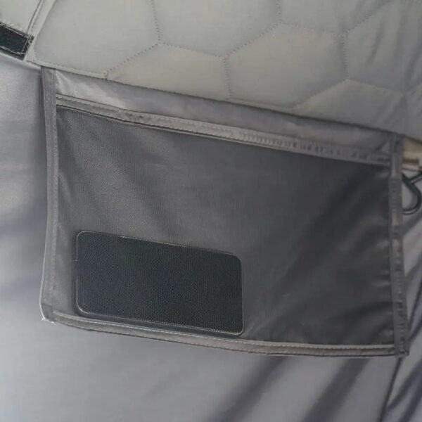 • Materiale de înaltă calitate: Interiorul este acoperit cu poli oxford 300D durabil, iar podeaua este realizată din polioxford 210D, acoperită cu PU 3000 mm, asigurând impermeabilitate și rezistență la uzură.