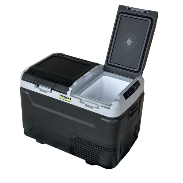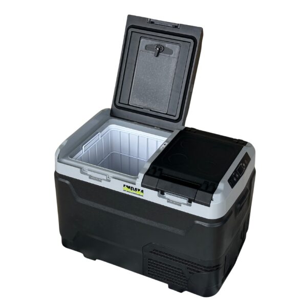 Frigider auto portabil EMD4X4 cu compresor, Bluetooth, alimentare 12V/24V/220V, control digital, temperatură reglabilă -20°C – +20°C, ideal pentru mașină, camping, off-road, pescuit, rulote