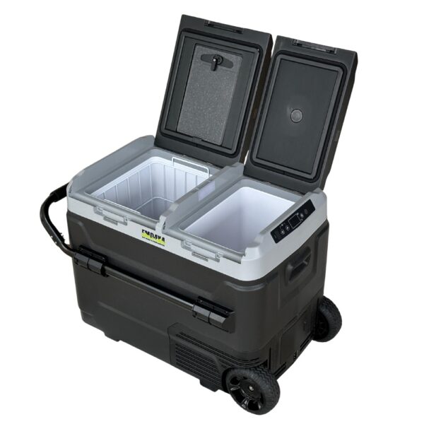 Frigider si congelator auto portabil cu roti 50 L, cu compresor, alimentare 12V/24V/220V, Bluetooth, control digital, -20°C +20°C EMD4x4