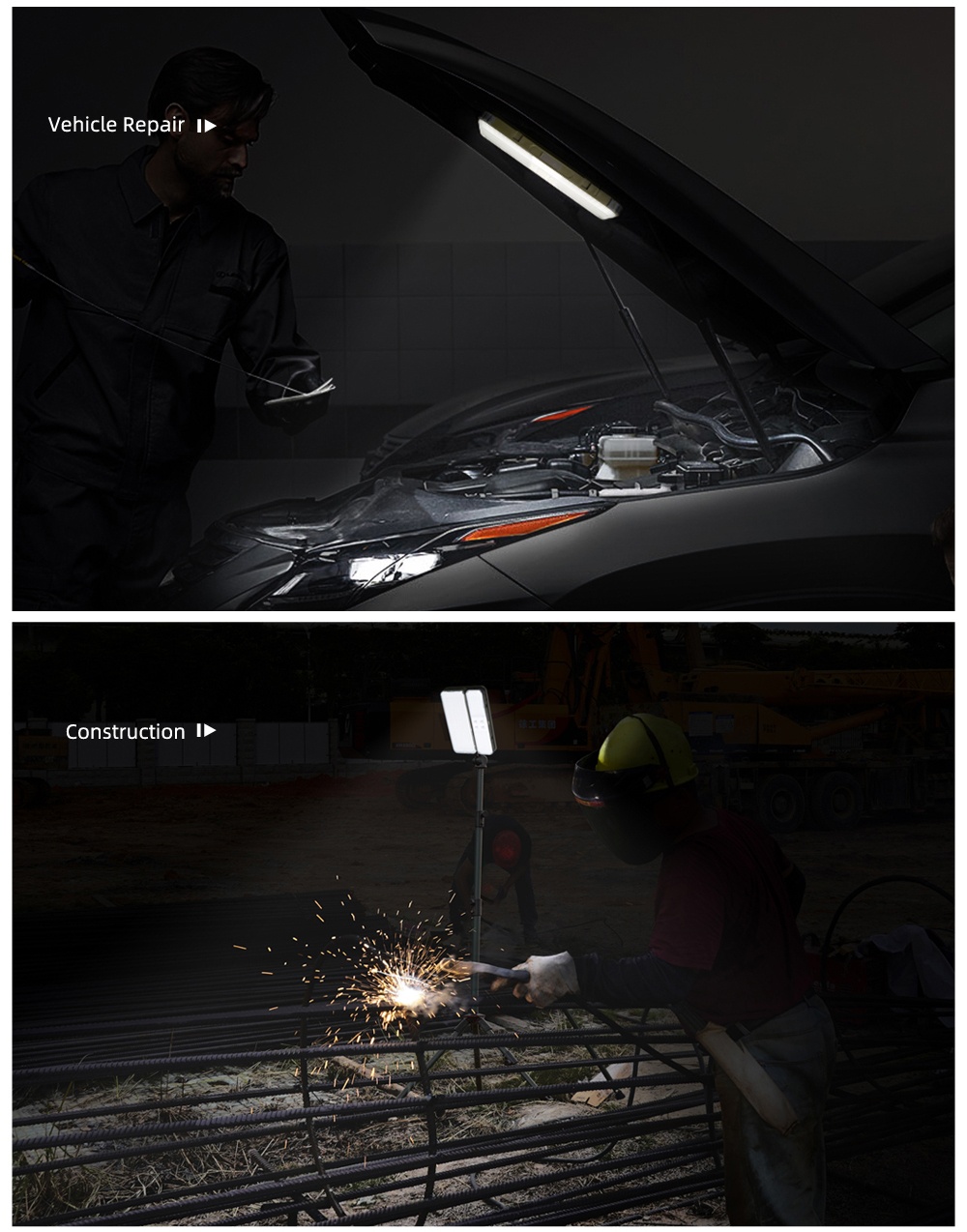 O soluție completă pentru camping, pescuit sau aventuri off-road, această lumină LED portabilă oferă o iluminare puternică și flexibilă oriunde te-ai afla. Cu un trepied stabil reglabil până la 1,8 metri și două lanterne detașabile care pot fi folosite separat, sistemul este gândit pentru versatilitate și confort. Luminozitatea ajunge până la 3000 lumeni în modul maxim, apoi se stabilizează automat la 1500 lumeni pentru a prelungi autonomia bateriei.