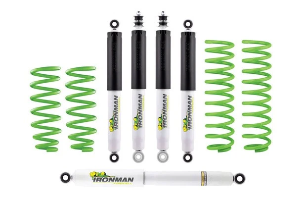 Imaginea prezinta alcatuirea kitului: 4 amortizoare Nitrogas, 4 arcuri elicoidale si amortizor directie.