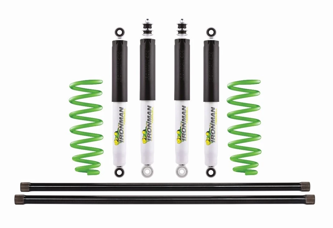 Imaginea prezinta alcatuirea kitului: 4 amortizoare NitroGas, 2 bare de torsiune HD, 2 arcuri elicoidale.