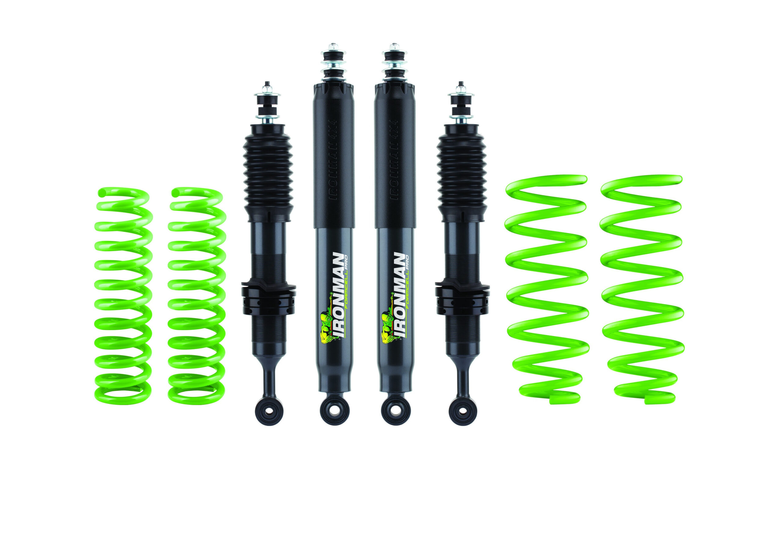 Imaginea prezinta alcatuirea kitului: 4 amortizoare FOAMCELL PRO reparabile, 4 arcuri elicoidale.