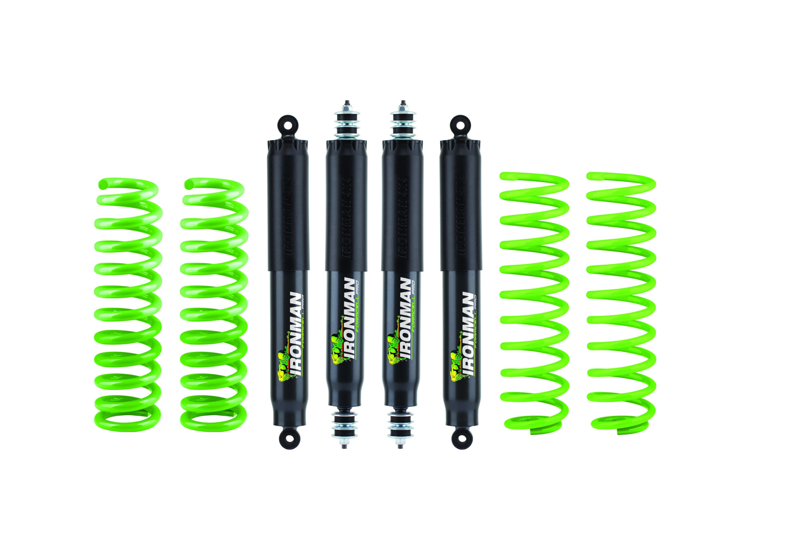 Imaginea prezinta alcatuirea kitului: 4 amortizoare Heavy Duty FoamCell, 4 arcuri elicoidale.