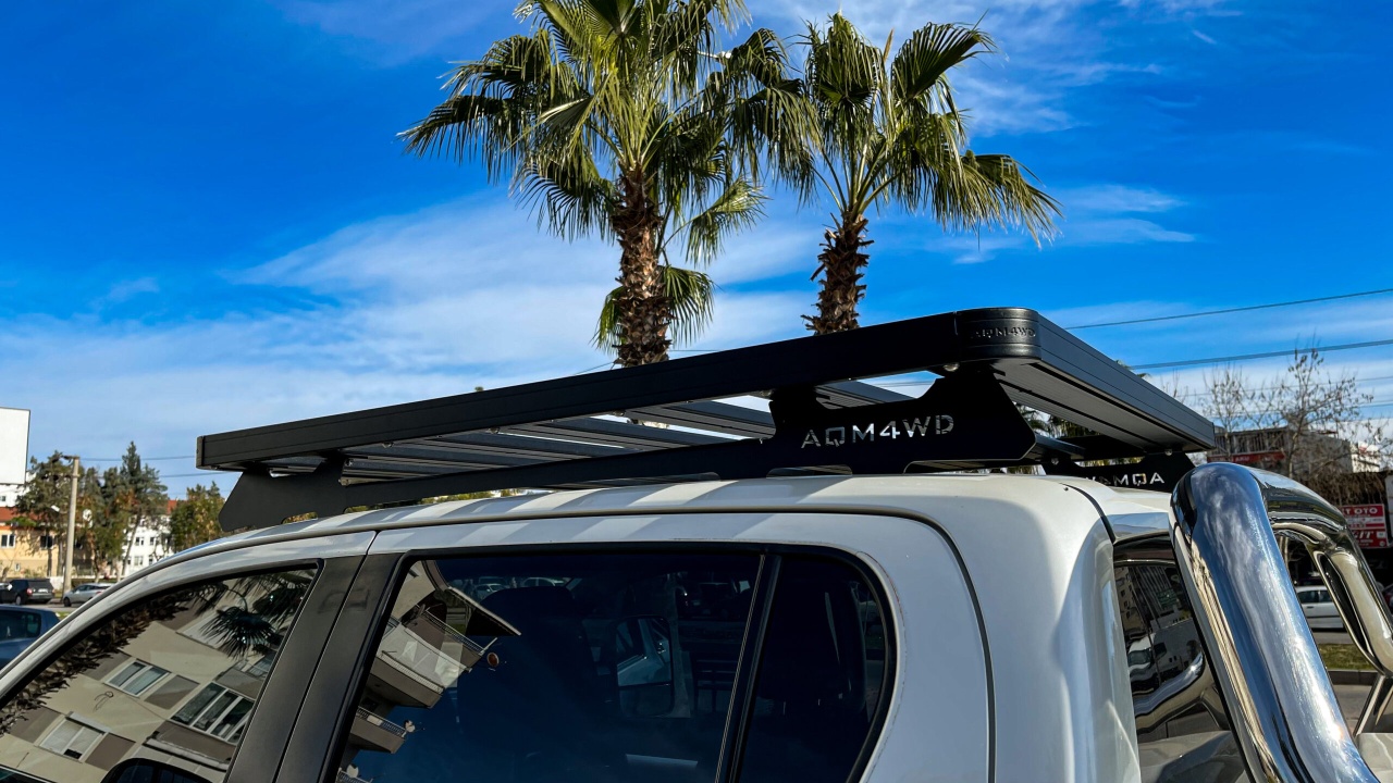 Montajul portbagajului slim de la AQM4WD se face pe barele transversale, pe suporturi dedicate sau pe barele longitudinale în cazul în care dimensiunie portbagajului coincid cu dimensiunile plafonului mașini.