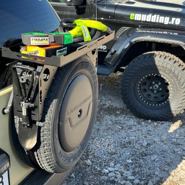 Acest suport multifuncțional pentru roata de rezervă este soluția perfectă pentru a monta diverse accesorii pe vehiculul tău. Fabricat din materiale rezistente la intemperii și condiții dure, suportul este ideal pentru pasionații de off-road și overlanding. Oferă stabilitate și durabilitate, asigurând că accesoriile tale sunt fixate în siguranță în timpul călătoriilor. Designul său compact și ușor de instalat nu doar că adaugă funcționalitate, dar și economisește spațiu valoros.