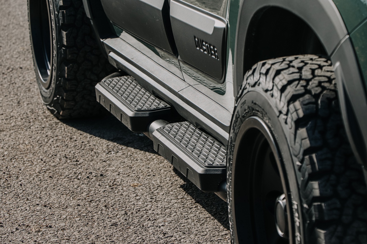 AQM4WD D30 vine cu dimensiuni și finisaje perfect adaptate pick-up-ului tău, asigurându-se că se integrează perfect în designul acestuia. Cu un design ergonomic și un profil estetic, pragurile laterale nu numai că oferă o cale convenabilă pentru a accesa cabina, dar și adaugă o notă de eleganță la fiecare călătorie.