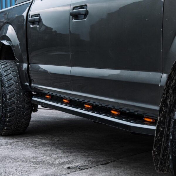 AQM4WD Q30 vine cu dimensiuni și finisaje perfect adaptate pick-up-ului tău, asigurându-se că se integrează perfect în designul acestuia. Cu un design ergonomic și un profil estetic, pragurile laterale nu numai că oferă o cale convenabilă pentru a accesa cabina, dar și adaugă o notă de eleganță la fiecare călătorie.