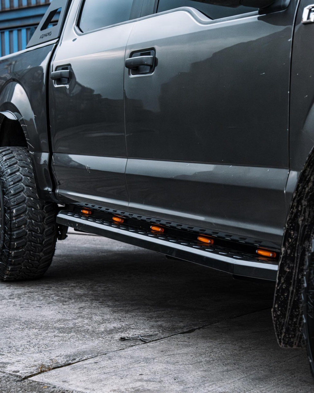 AQM4WD Q30 vine cu dimensiuni și finisaje perfect adaptate pick-up-ului tău, asigurându-se că se integrează perfect în designul acestuia. Cu un design ergonomic și un profil estetic, pragurile laterale nu numai că oferă o cale convenabilă pentru a accesa cabina, dar și adaugă o notă de eleganță la fiecare călătorie.