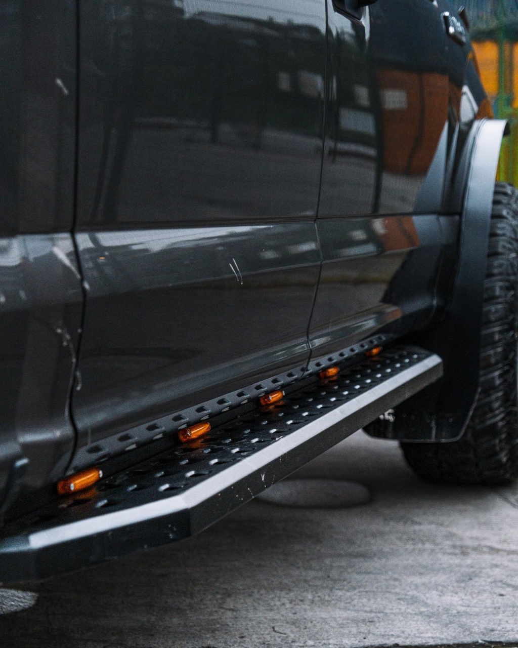 AQM4WD Q30 vine cu dimensiuni și finisaje perfect adaptate pick-up-ului tău, asigurându-se că se integrează perfect în designul acestuia. Cu un design ergonomic și un profil estetic, pragurile laterale nu numai că oferă o cale convenabilă pentru a accesa cabina, dar și adaugă o notă de eleganță la fiecare călătorie.
