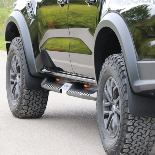 AQM4WD S32 vine cu dimensiuni și finisaje perfect adaptate pick-up-ului tău, asigurându-se că se integrează perfect în designul acestuia. Cu un design ergonomic și un profil estetic, pragurile laterale nu numai că oferă o cale convenabilă pentru a accesa cabina, dar și adaugă o notă de eleganță la fiecare călătorie.