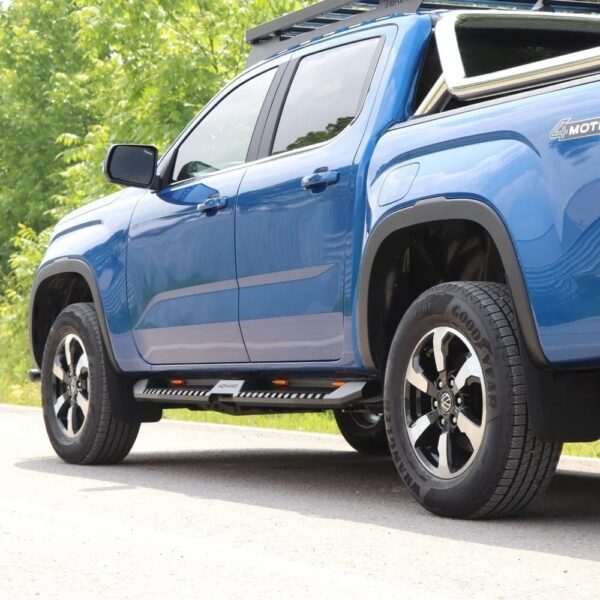 AQM4WD S32 vine cu dimensiuni și finisaje perfect adaptate pick-up-ului tău, asigurându-se că se integrează perfect în designul acestuia. Cu un design ergonomic și un profil estetic, pragurile laterale nu numai că oferă o cale convenabilă pentru a accesa cabina, dar și adaugă o notă de eleganță la fiecare călătorie.