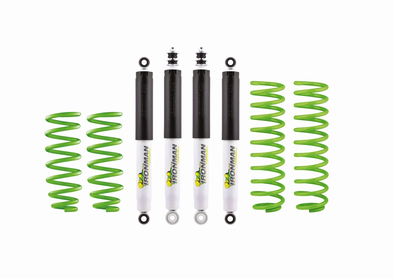 Imaginea prezinta alcatuirea kitului: 4 amortizoare HD FoamCell, 4 arcuri elicoidale.